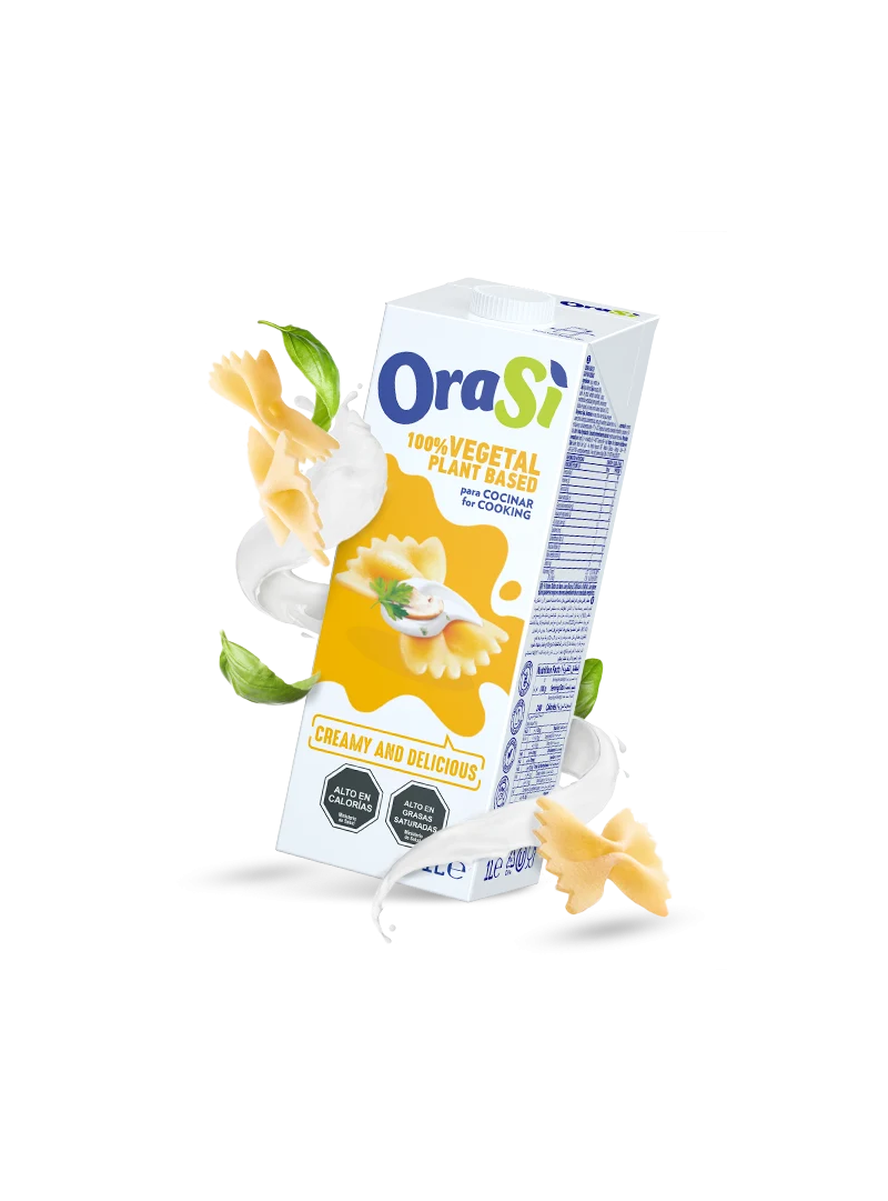Descubre la crema vegetal para cocinar OraSì, elaborada con soja 100% italiana. Su textura suave y cremosa la convierte en el ingrediente ideal para realzar el sabor de tus platos, desde recetas tradicionales hasta creaciones culinarias innovadoras.