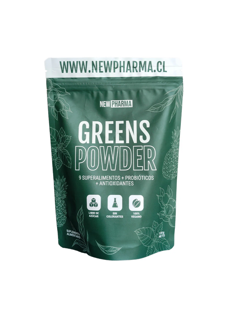 Greens Powder de NewPharma es un complemento alimenticio en polvo formulado con una combinación cuidadosamente seleccionada de 9 superalimentos, que incluyen el Té Matcha, la Spirulina y el Maqui, entre otros ingredientes poderosos. Esta fórmula mejorada proporciona una opción natural y saludable para promover tu bienestar de forma conveniente y deliciosa.
